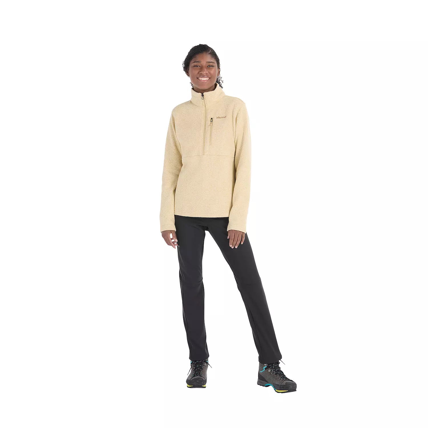 Experience cozy comfort with a conscience in the Women's Marmot Drop Line Half Zip Pullover. Crafted from soft, durable polyester fleece with a 100% recycled polyester lining, this midweight layer is perfect for cool-weather adventures or everyday lounging. The classic half-zip design, elastic cuffs, and regular fit offer versatile style and ease of movement. Designed to hit just below the waist, it’s an essential, eco-friendly layer for hiking, camping, or simply enjoying a crisp autumn day.